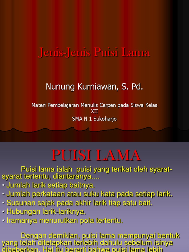 Koleksi 6 Puisi Lama Terupdate. Check spelling or type a new query. Maybe you would like to learn more about one of these? We did not find results for: